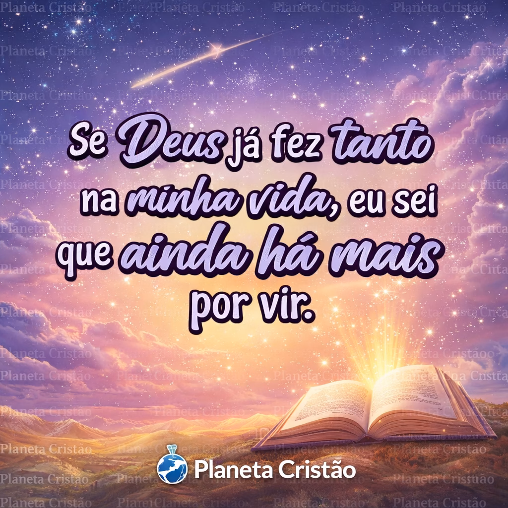 Devocional Diário do Planeta CristãoAinda Há Mais Pra Mim Quando eu olho para trás e vejo tudo o que Deus já fez na minha vida, meu coração se enche de gratidão. Quantas portas Ele abriu, quantas vezes me sustentou, quantas vezes me levantou quando pensei que não conseguiria continuar.Mas o Espírito Santo também me lembra…